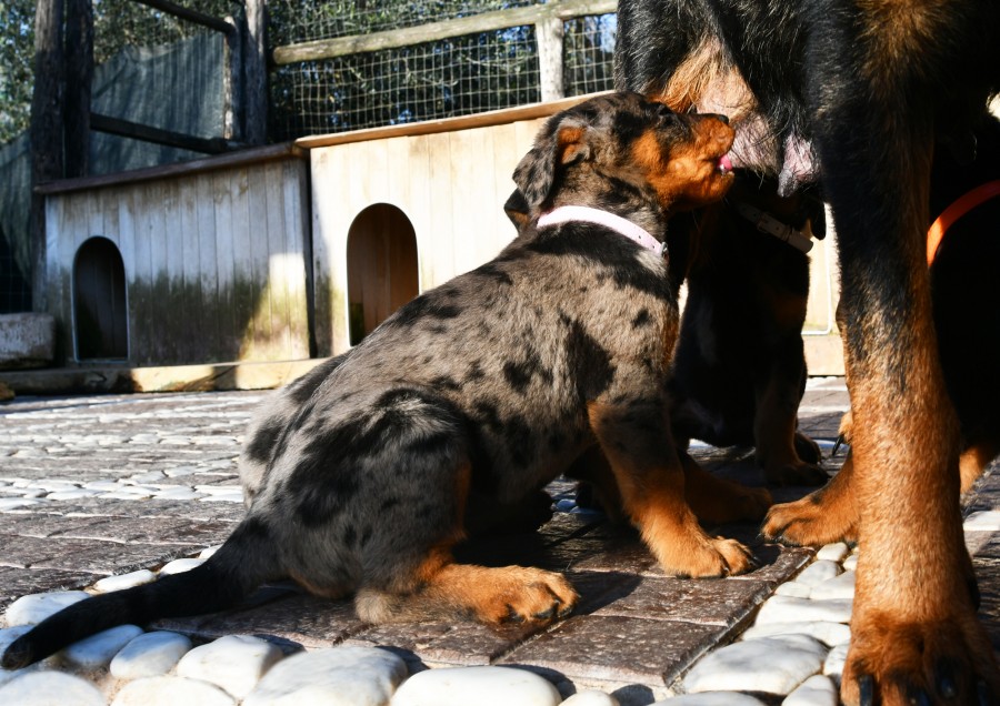 Cucciolata nata il 28 Novembre 2025 : 2 f. e 3 m. arlecchino, 1 f. e 1 m. nero focati