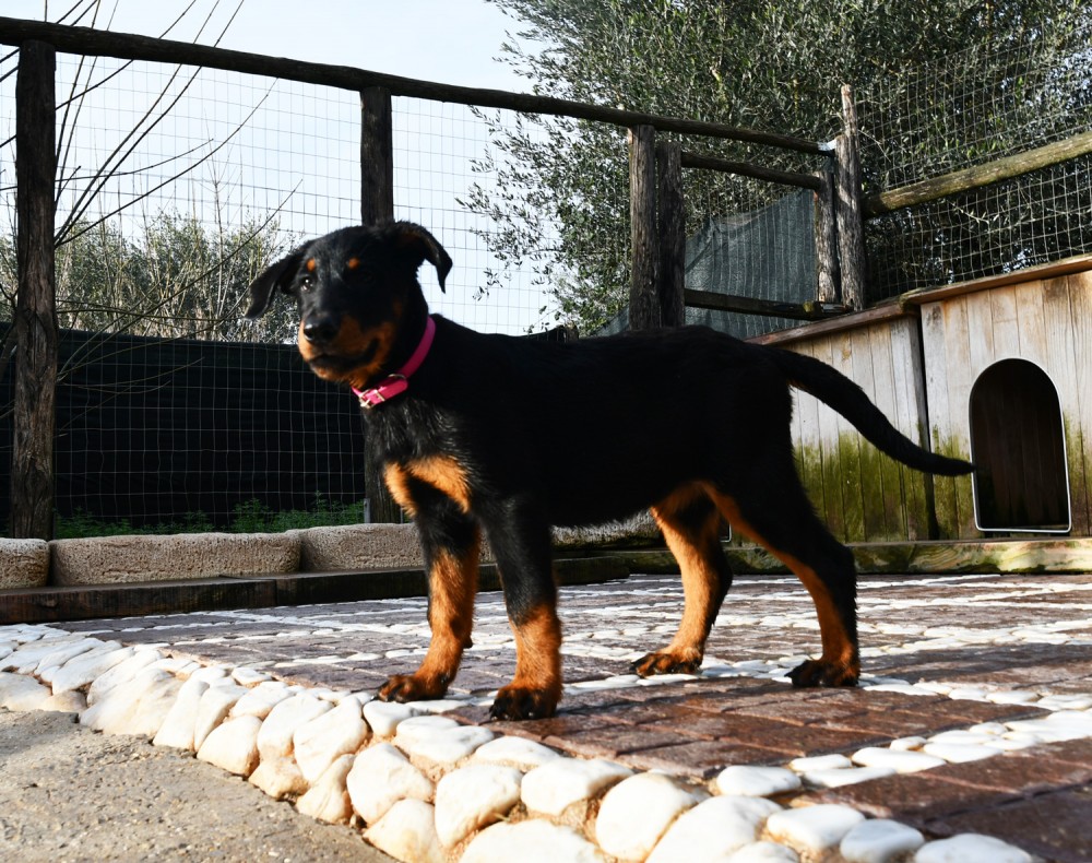 femmina nero focata collare fucsia nome LUNA (prenotata da Terni)